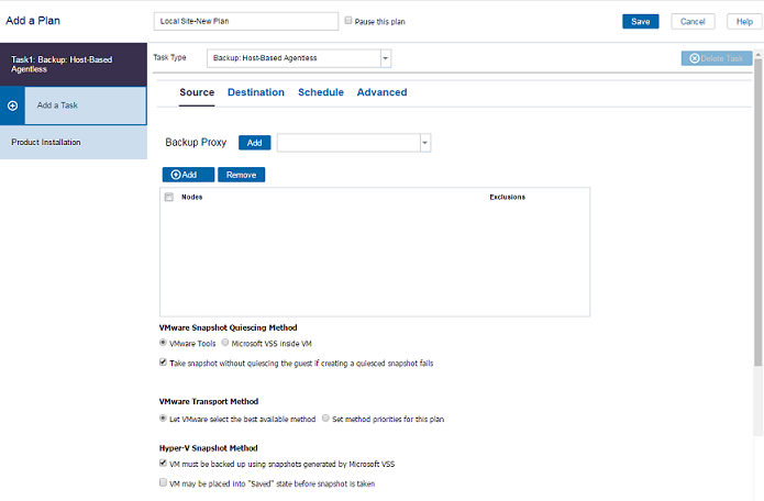 备份计划包含对虚拟机执行备份并将数据存储到指定目标的备份任务。每个任务均包括定义源、目标、排定以及其他备份详细信息的参数。