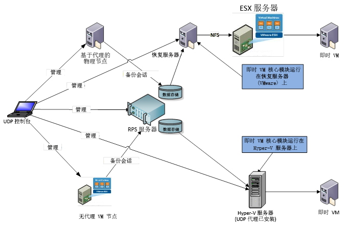 如何在 Hyper-V 和 VMware ESX 服务器上创建和管理即时虚拟机