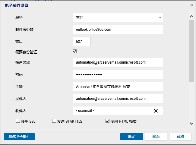 - 电子邮件即配置为接收数据存储的所有报警。