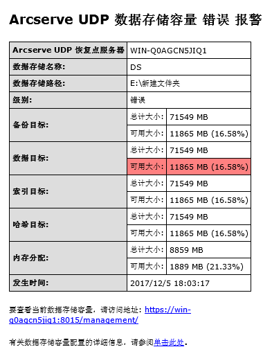 - 数据存储目标文件夹会释放一些空间(例如,数据存储合并作业之后,扩大目标卷空间等)并离开警告/错误阈值回到正常范围。