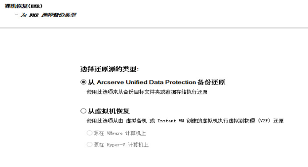注意:如果虚拟机已开机,则虚拟机在 BMR 过程开始后的任何数据更改将不会恢复。