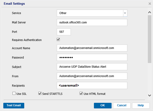 - Note: Test Email verifies if the Recipients email ID is receiving email. We recommend to click and test before closing this dialog.