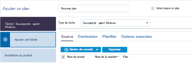 Spécifiez la source, la destination, la planification et les détails avancés.