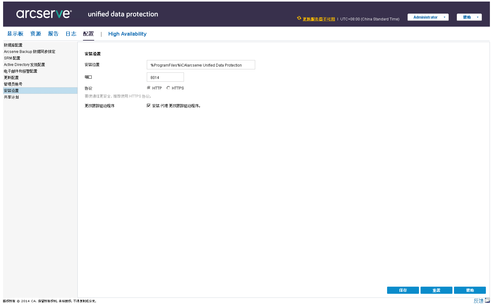 浏览和配置 Arcserve UDP › 如何配置 Arcserve UDP › 安装设置