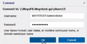 - Enter the username and password as needed, and then click OK.