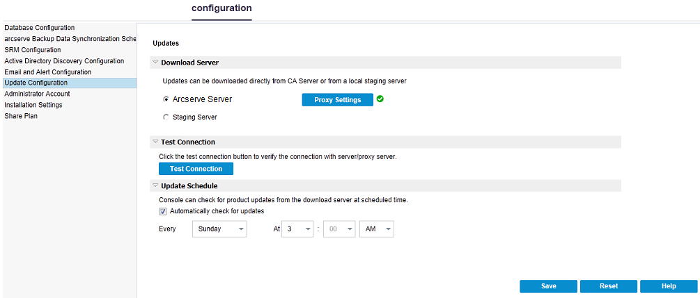 Exploring and Configuring Arcserve UDP › How to Configure Arcserve UDP › Update Configuration
